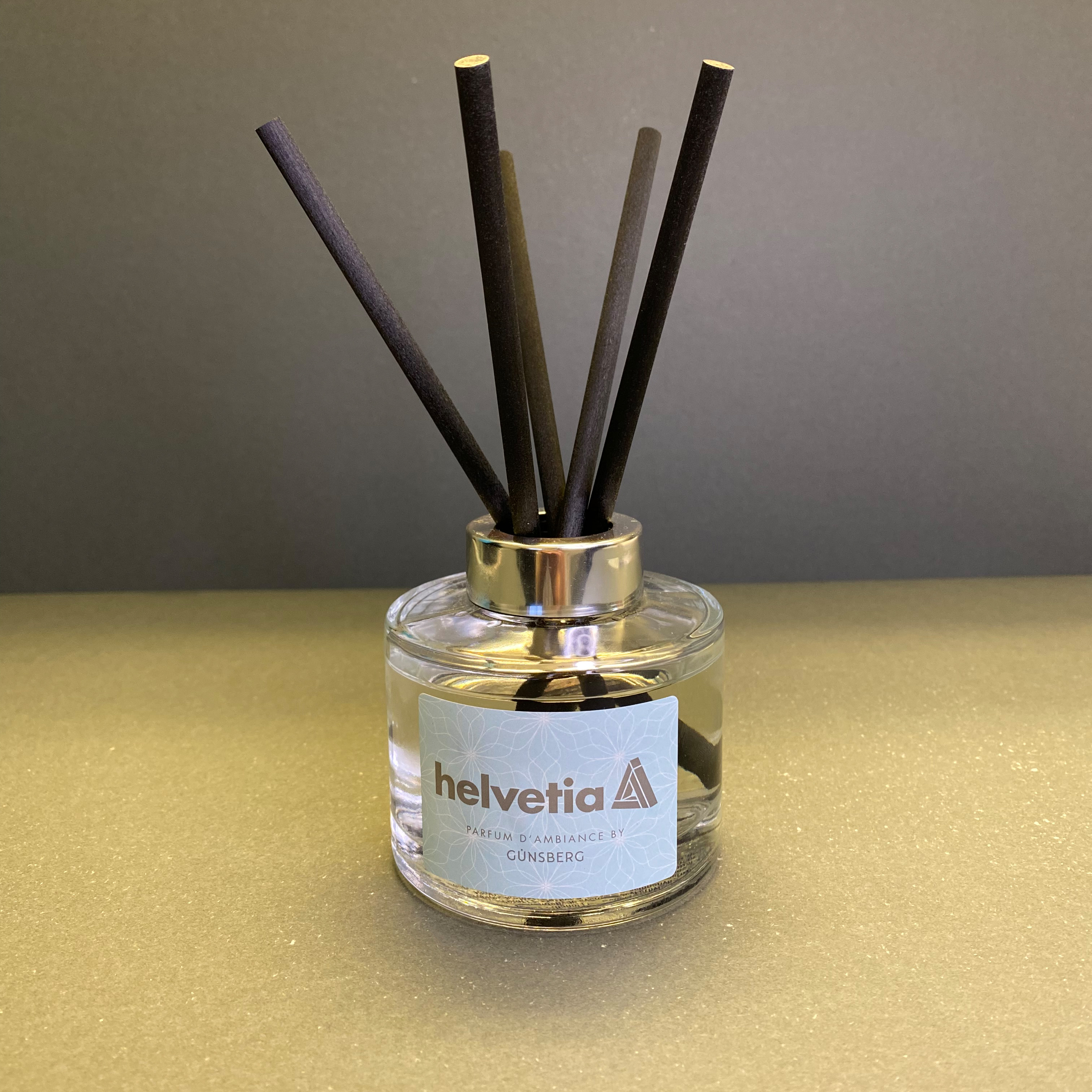 Der Helvetia Duft ist erfrischend und belebend – vergleichbar mit einem Spaziergang durch den Wald. Die grün-frische Kopfnote symbolisiert die Freundlichkeit und familiäre Atmosphäre, während die floralen und aquatisch-ozonischen Aspekte in der Herznote die Agilität und Innovationskraft widerspiegeln. Die Basisnoten von Zeder, Edelholzklängen und Ambra verleihen dem Duft Tiefe und Wärme, die den harmonischen Bogen der Marke abschließt. Somit wurden im Duft die Schweizer Wurzeln wie auch die Moderne der Wiener Großstadt vereint.