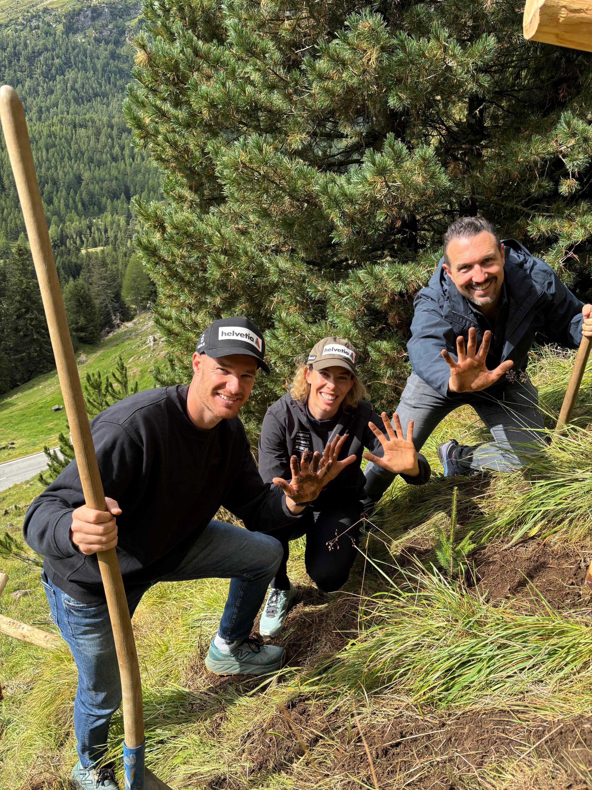 Natur schützen, Sicherheit stärken und ein Zeichen setzen: Am 21. August pflanzten die Athlet:innen Dario Cologna, Michelle Gisin undFadri Janutin gemeinsam mit Vertretern der Gemeinde, den örtlichen Förstern und von Helvetia im Bleniotal die ersten 2 000 Bäume eines neuen Schutzwaldeprojekts am Lukmanierpass. Insgesamt sieht das Projekt rund 20 000 neue Bäume vor, die langfristig helfen die Lawinengefahr und Steinschlag zu reduzieren und so auch im Winter die Verbindung zwischen Blenio und Surselva zusätzlich zu sichern.