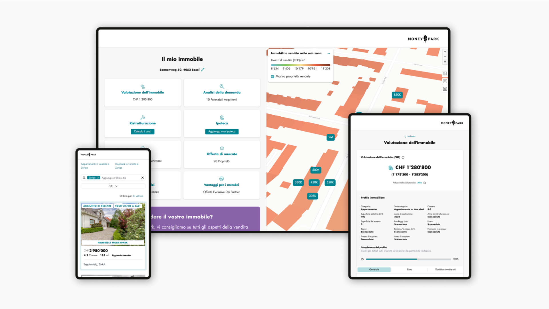 MoneyPark vi offre un’ampia scelta di immobili. Attraverso il Cockpit gratuito di MoneyPark potrete ricevere informazioni complete e una valutazione per tutti gli immobili in vendita. Inoltre avrete la possibilità di scoprire in anteprima le nostre proprietà in vendita e di essere così un passo avanti rispetto al mercato.